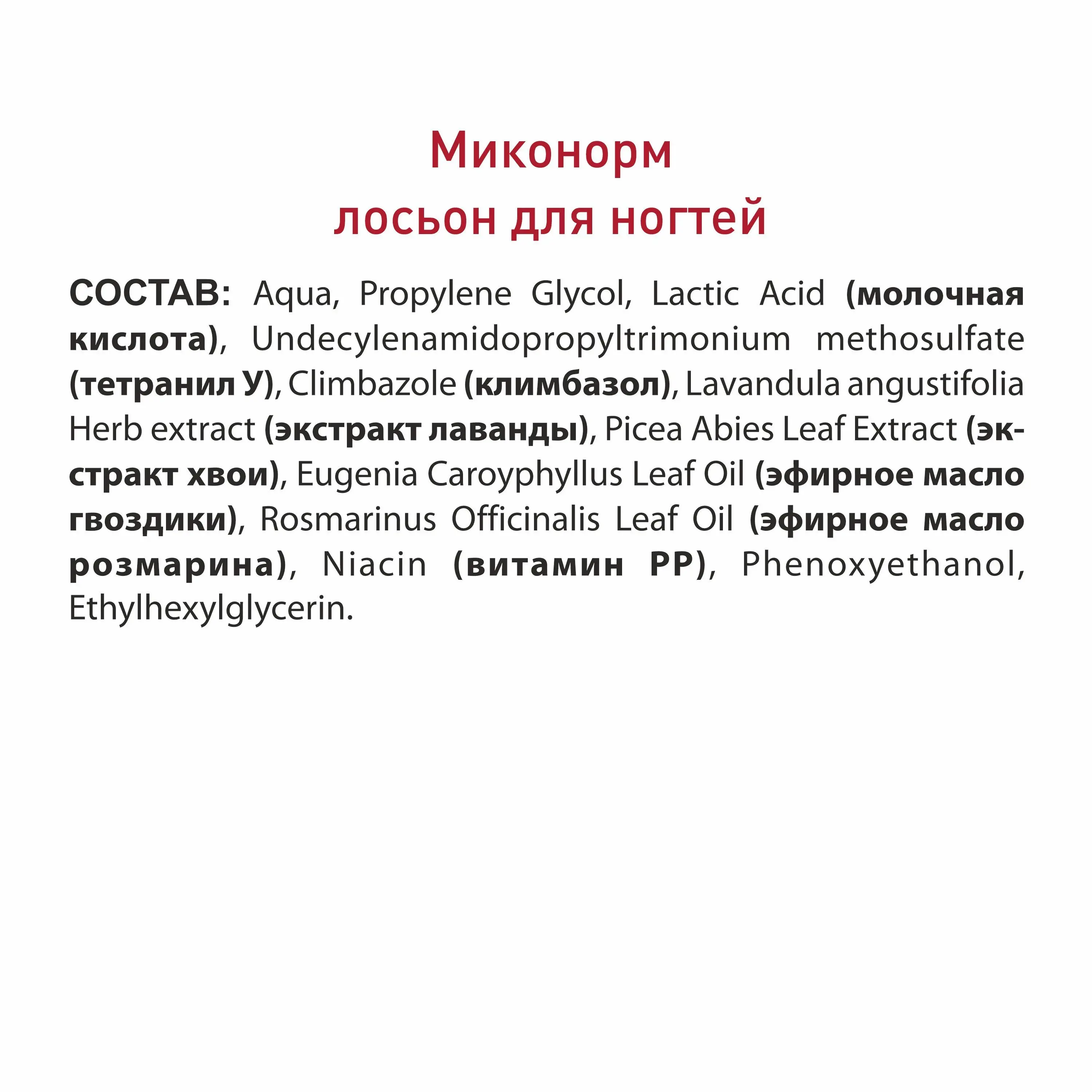 Применение: Перед первым применением лосьона удалите пораженную часть ногтя. Нанесите 1-2 капли лосьона на поверхность ногтя и распределите носиком флакона, уделив внимание срезанному краю ногтя. Подождите до полного впитывания состава. Используйте лосьон утром и вечером до полного восстановления здорового вида ногтевой пластины.