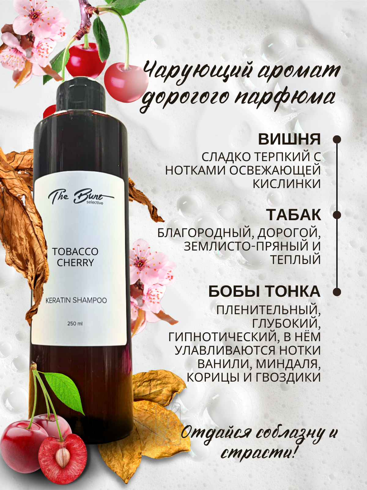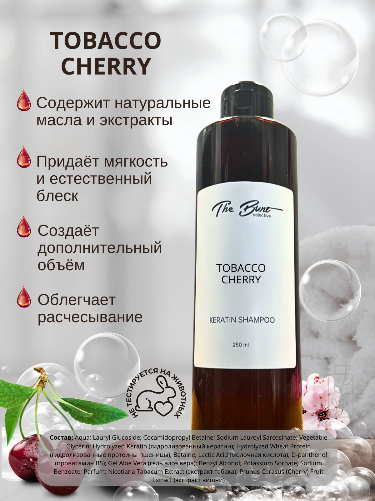 Состав: Aqua; Lauryl Glucoside; Cocamidopropyl Betaine; Sodium Lauroyl Sarcosinate; Vegetable Glycerin; Hydrolyzed Keratin (гидролизованный кератин); Hydrolyzed Wheat Protein (гидролизованные протеины пшеницы); Betaine; Lactic Acid (молочная кислота); D-panthenol (провитамин В5); Gel Aloe Vera (гель алоэ вера); Benzyl Alcohol; Potassium Sorbate; Sodium Benzoate; Parfum; Nicotiana Tabacum Extract (экстракт табака); Prunus Cerasus (Cherry) Fruit Extract (экстракт вишни).