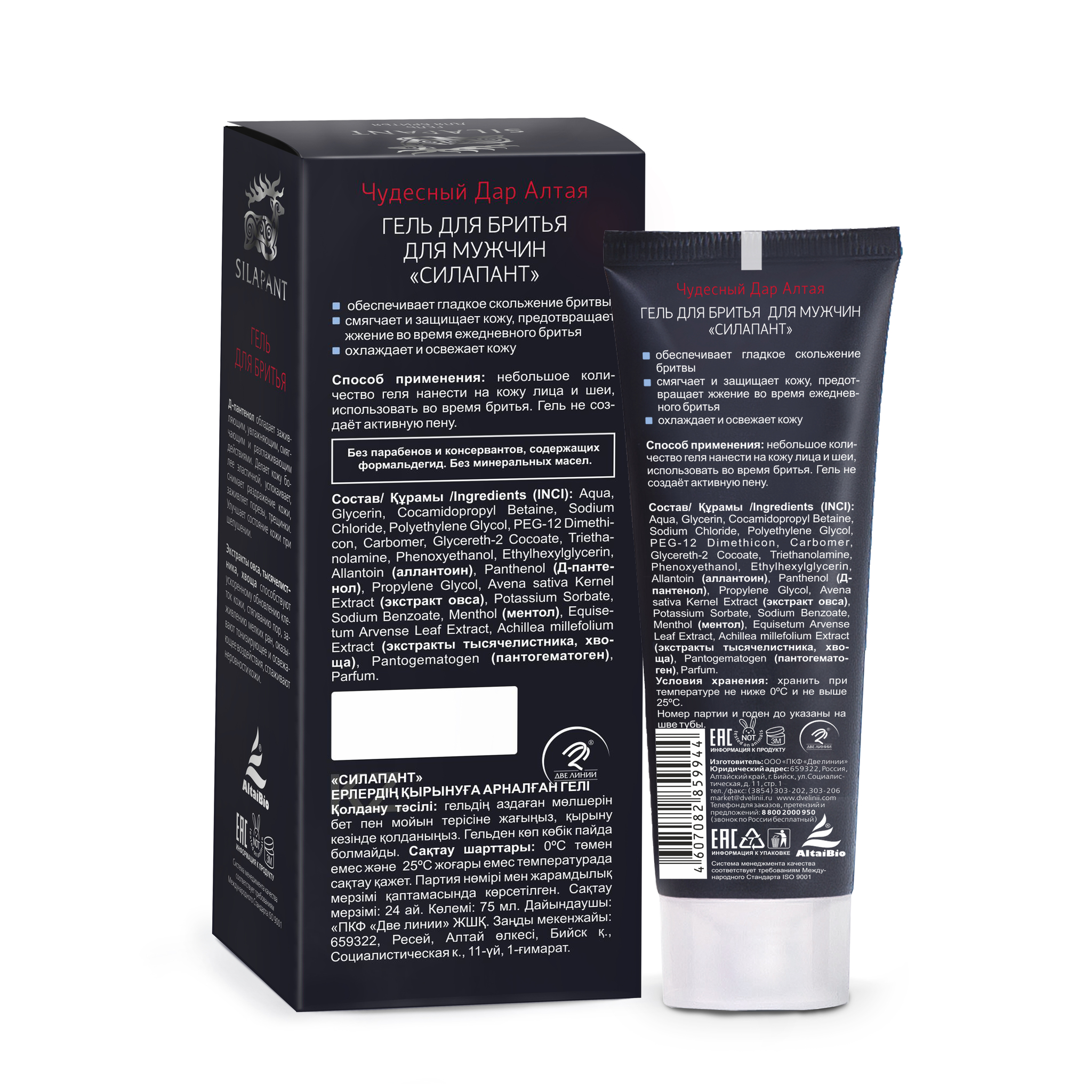 Гель для бритья MEN с пантогематогеном Silapant, 75 мл, Две линии